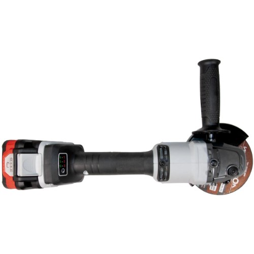 Аккумулятор. В комплекте его нет, как и зарядного устройства. Совместимые батареи на 18 вольт. На 6 Ач в фирменном магазине бренда такой будет стоить как вся болгарка. Но и проработает с ним инструмент долго.