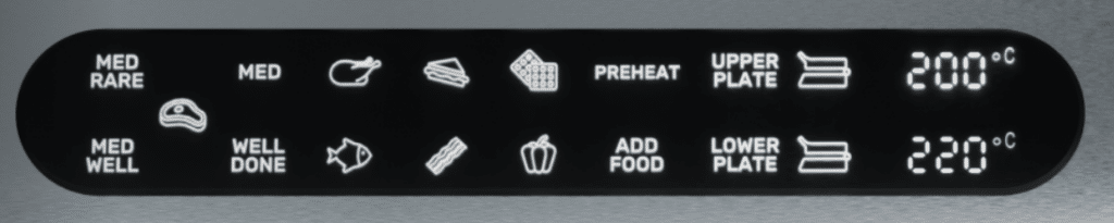 В плане автоматизации тут все отлично — 10 готовых программ практически на все случаи жизни. Есть программы для рыбы, овощей, бекона, курицы, вафель и бутербродов, и отдельно 4 программы для жарки мяса: Medium rare, Medium, Medium Well и Well Done. Знатоки стейков скажут, что градаций слишком мало, но если вы хотите больше контроля, то есть ручной режим, в котором можно настроить температуру нагревательных панелей отдельно.