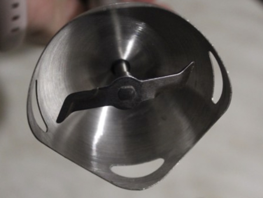 Функционал. Прибор сделан из качественных материалов и оснащен набором насадок, которые легко меняются. Он может взбивать яйца, тереть корнеплоды, шинковать капусту и даже делать молочную пенку для капучино. В нем острый нож, но он двухлепестковый, поэтому равномерно измельчить волокнистые и твердые продукты, как способен нож с четырьмя лепестками, здесь довольно проблематично.