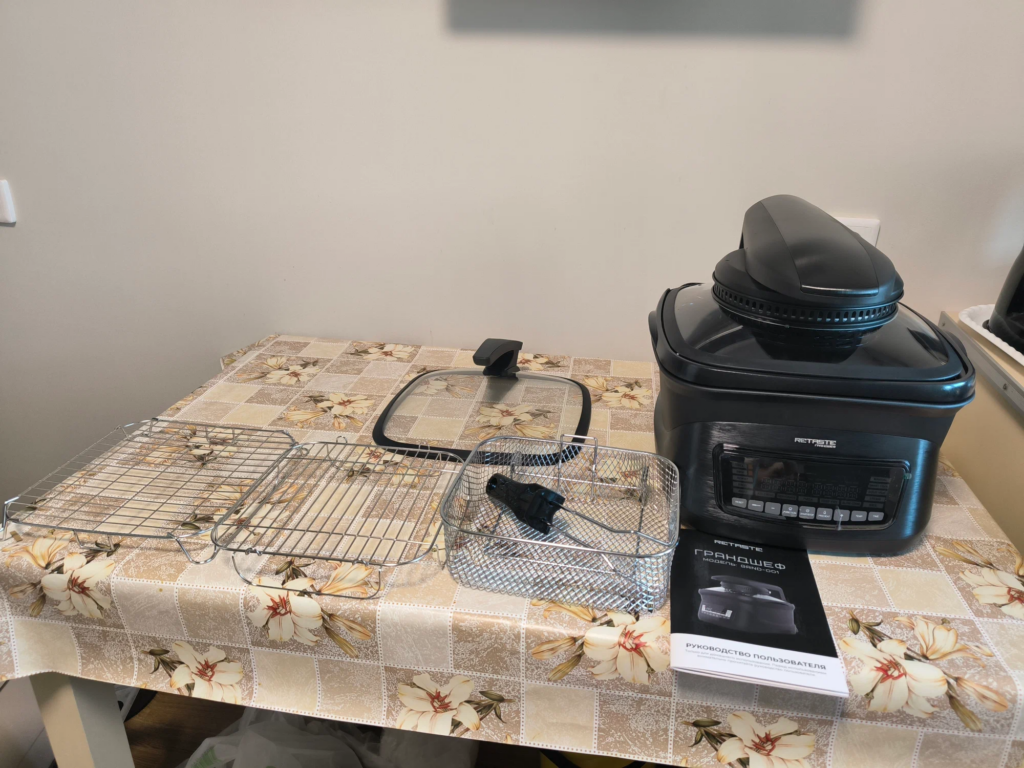 В общем, задумка — великолепная, комплектация тоже на высоте, но громоздкий форм-фактор, сложная система управления, путанная инструкция и целый ворох сомнительных решений не позволяет назвать этот аэрогриль идеальным.